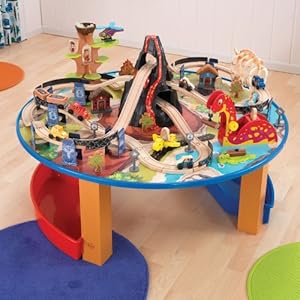 Kidkraft volcano train set 95 piece train set with track round storage table dinosaur crane. The triceratops train makes his way along the track, where a towering brontosaurus lifts and lowers a load of dinosaur eggs. Explore more searches like kidkraft dinosaur train table and set. This great table set is a place where the flinstone's would call home.